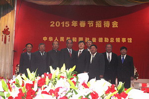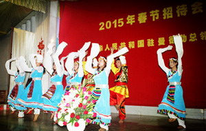 2015年2月6日晚,中国驻曼德勒总领馆在东方屋酒店举行2015年春节招待会,来自曼德勒、东枝、腊戌等上缅甸各地华侨华人、中国公司及留学生代表等约400人出席。宾主互致新春问候,中国留学生、曼德勒福庆学校师生表演了具有浓郁中国风的歌舞节目,现场洋溢着祥和、喜庆的节日气氛。