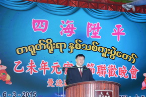 2015年3月6日,曼德勒云南同乡会举办乙未羊年元宵节联欢晚会,驻曼德勒总领事王愚、缅甸中部军区副司令安佐准将出席。王总领事讲话,并向元宵节文体比赛获奖者颁奖。