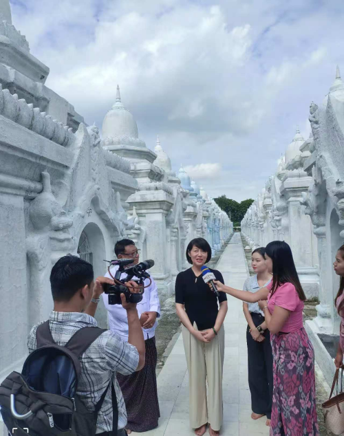 高总领事向缅方移交捐赠资金,实地考察佛塔受灾和修复情况并接受缅甸广播电视台采访。高总领事表示,中方十分关注曼德勒灾后重建特别是受损文化遗产修复情况,希通过捐赠助力缅方完成有关修缮工作,为增进中缅友谊、促进佛教文化交流注入新动力。