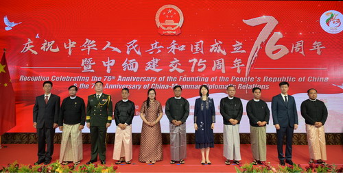 2025年9月24日,驻缅甸使馆在仰光举行庆祝中华人民共和国成立76周年暨中缅建交75周年招待会。驻缅甸大使马珈,缅总统府一部部长丁昂山和四部部长吞翁、财政与税收部长坎佐、仰光省首席部长梭登、第五特战局长戈戈乌及缅各界友好人士、各国驻缅使节、国际组织代表、中资企业、华侨华人等500余人出席。