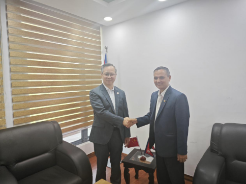 2025年10月14日,驻尼泊尔大使陈松拜会尼泊尔临时政府内政部长阿亚尔。