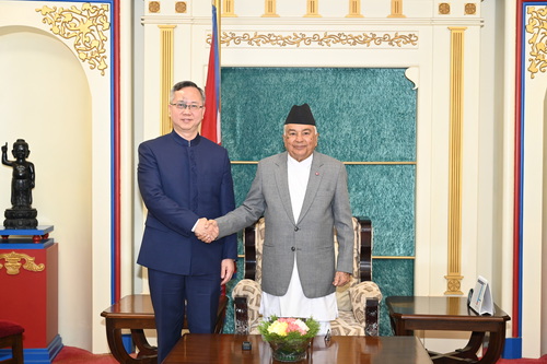 2025年12月23日,驻尼泊尔大使陈松辞行拜会尼泊尔总统鲍德尔。