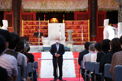 张总领事在致辞中表示,长崎孔子庙是弘扬中国传统文化的窗口,经过多年发展不仅成为中日文化交流互鉴的重要平台,也成为东西方文明交融的多彩舞台,是体现长崎独特“和华兰”文化的一张靓丽名片。今年是中日邦交正常化50周年,明年孔子庙将迎来建立130周年,希望孔子庙充分发挥平台作用,引进更多优质文化资源,持续为传承中华传统文化、增进世界人民友谊作出应有贡献。