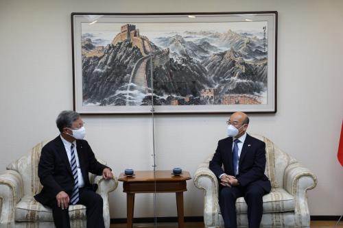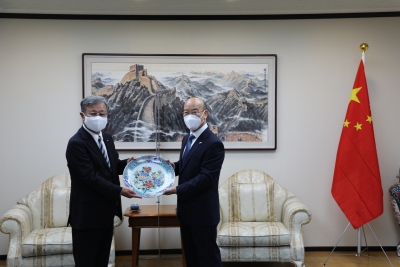2022年9月13日,驻长崎总领事张大兴会见来馆祝贺中华人民共和国成立73周年和中日邦交正常化50周年的长崎县立大学理事长稻永忍一行。