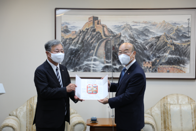 稻永理事长代表全校师生向总领馆致以节日的祝贺,并送上该校师生书写的祝福寄语。稻永表示,青年学生主动参与国际交流、增进相互理解对于巩固深化日中友好关系具有积极推动作用,长崎县立大学愿持续为日中青年交流互动创造更多机会,以实际行动为两国友好事业发展贡献力量。