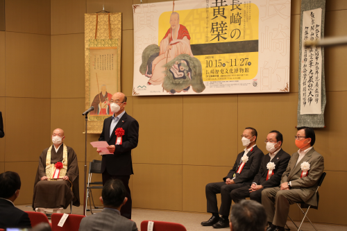 2022年10月14日,驻长崎总领事张大兴出席“长崎的黄檗—围绕隐元禅师与唐寺的故事”企划展开幕式并致辞,长崎县文化观光国际部部长前川谦介、长崎市副市长武田敏明出席并分别代读长崎县知事大石贤吾和长崎市长田上富久的贺信,长崎历史文化博物馆馆长水嶋英治、京都黄檗山万福寺管长近藤博道出席并致辞,福建省人民对外友好协会会长陈出新发表视频致辞,当地各界人士代表约100人参加活动。