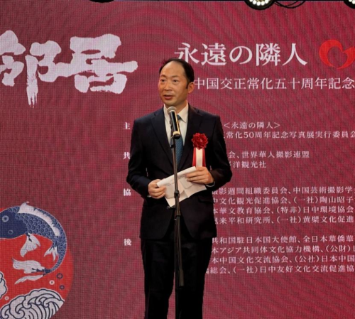 2022年10日18日,驻日本使馆临时代办杨宇应邀出席“永远的邻居”纪念中日邦交正常化50周年摄影展开幕式。该活动由中日双方文化界人士共同组织举办,日本前首相福田康夫、鸠山由纪夫,前内阁官房长官河村建夫,前驻华大使谷野作太郎、阿南惟茂,日中协会理事长濑野清水,日中友好会馆理事长小川正史,日中友好协会常务理事永田哲二及华侨华人代表、两国各界人士约100人参加。