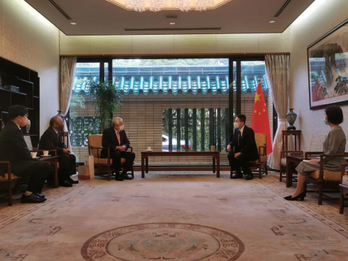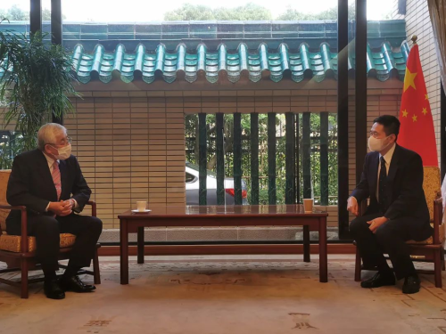 2022年10月19日,驻福冈总领事律桂军会见清香奖学会理事长松尾正广。该会常务理事大庭健三、事务长直野正等在座。