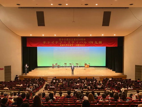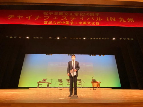 为庆祝中日邦交正常化50周年,2022年10月13日至14日,首届“九州中国节·中国文化日”活动在福冈县立百道文化中心成功举办。该活动由驻福冈总领馆策划,九州华侨华人文学艺术家联合会主办。驻福冈总领事律桂军以及九州华侨华人文学艺术家联合会会长马星华出席并致辞。九州华侨华人青年会会长付强、九州日中文化协会会长张晶等参加活动。领区各界中日嘉宾、各侨团代表、当地市民和侨胞共500余人参加活动并观看演出。