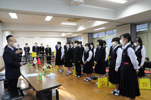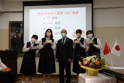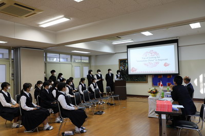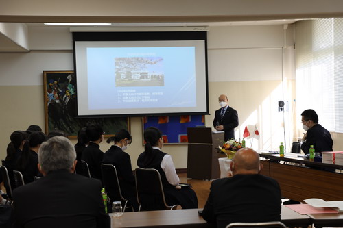张总领事还向同学们介绍了中日关系50年发展历程以及长崎县与中国50年友好交往情况和总领馆职责。