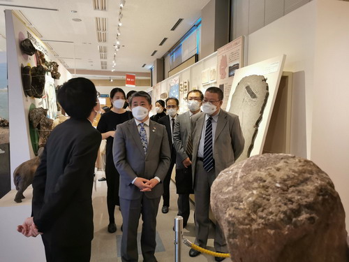 参观过程中,薛总领事始终不忘关心同学们宿舍条件如何,食堂饭菜是否可口,学业职业规划等,表示总领馆将一如既往为领区中国学子提供优质贴心服务,做大家最坚强的后盾,希望同学们努力学习,广交益友,架起中日友好的青春桥梁。薛总领事还在该校青年研究人员陪同下,和留学生一起参观广岛大学综合博物馆,听取该校同中国西藏阿里天文观测基地合作开展天文探索、同中国多地开展恐龙化石研究合作等情况。