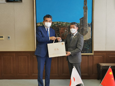 薛剑总领事还同中国政府友谊奖获奖外国专家、日本著名汉学家、广岛大学理事兼副校长佐藤利行就当前国际局势、中日关系及两国教育合作等进行深入探讨交流。