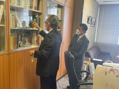 参观过后,薛剑总领事会见广岛大学校长越智光夫。薛剑总领事表示,贵校长期以来同中国百余所高校、科研机构开展交流,对华合作走在日本高校前列,我表示高度赞赏。总领馆将一如继往提供力所能及的支持。今天,中国共产党的第二十次全国代表大会即将胜利闭幕。中国新时代十年创造的伟大成就、实现的伟大变革举世瞩目。期待疫情结束后越来越多的日本“Z世代”大学生到中国学习、生活,亲身感受中国发展变化,客观理性认识中国,成为真正的“知华”一代,为新时代中日友好贡献青春力量。越智感谢总领事一行远道而来并表示,我校长期以来通过缔结合作关系、联合办学、互派留学生等多种形式与中国140多所高校和科研机构开展合作,取得良好效果。目前我校1600余名留学生中,中国留学生超过半数。当前日中关系在政治层面遇到一定困难挑战,但教育合作不应切断,也无法切断。我校将延续对华合作良好势头,为两国关系发展不断注入正能量。