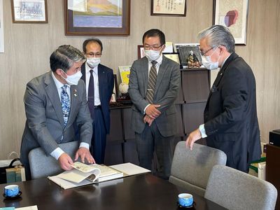 下午,薛剑总领事来到位于广岛县尾道市濑户田町的平山郁夫美术馆,出席面向两国青年举办的纪念中日邦交正常化50周年“走进平山郁夫、共绘中日友好”绘画大赛表彰仪式。平山郁夫美术馆馆长平山助成、广岛大学理事兼副校长佐藤利行、广岛县日中友好协会副理事长大谷育平、广岛县华侨华人总会会长张耀等出席活动。国内参赛院校代表在线出席。