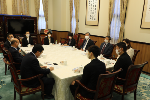 2022年10月26日,驻长崎总领事张大兴出席长崎县立大学师生座谈会,该校理事长稻永忍、副校长岩重聪美等出席。