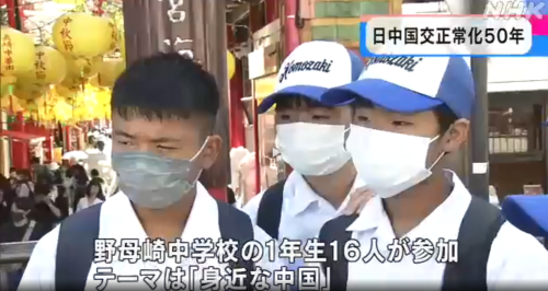 长崎市野母崎中学16名学生于9月15日参观了中华街、唐人屋、孔子庙、孙中山与梅屋庄吉纪念馆等与中国相关史迹,日本广播协会电视台进行了报道。