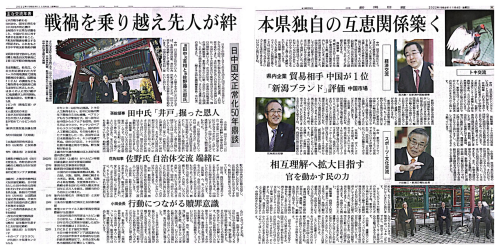 此次纪念中日邦交正常化50周年特别访谈由《新潟日报》会同驻新潟总领馆、新潟县厅三方共同策划,于10月下旬在新潟市中国庭园天寿园举办。