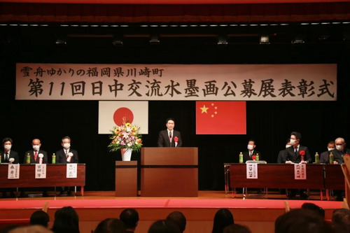 2022年11月5日,驻福冈总领事律桂军赴福冈县川崎町出席第11届日中交流水墨画展颁奖仪式并致辞、颁奖,宣介党的二十大精神。川崎町町长原田正弘,众议员武田良太代理矢野崇志,日本全国町村会副会长永原让二,福冈县市町村名胜庭园协议会副会长寺西明男,福冈县议会议员大岛道人、神崎聪,川崎町议会议长樱井英夫及画展评委、当地议员、获奖者等共60余人参加。