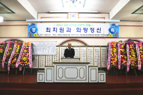 “孤云崔致远人文学论坛”旨在通过研究崔致远有关著作学说和历史遗迹,传承发扬崔致远人文思想,增进中韩民心相通。论坛由光州孤云崔致远先生纪念事业会于2019年成立并主办,迄今已举办四届,本次论坛的主题是“崔致远与花郎精神”。
