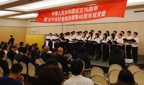 野田毅、海江田万里、近藤昭一等祝贺中华人民共和国成立76周年及后乐寮成立40周年,期待后乐寮为促进日中关系发展做出更大贡献。
