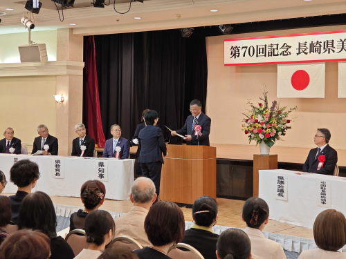 2025年10月11日,驻长崎总领事陈泳出席第70届长崎县美术展表彰仪式并为获中国总领事奖展品作者颁奖。县知事大石贤吾、副议长大场博文、教育次长坂口育裕、美术协会会长马场正邦、美术展实行委员长江副功及获奖者代表等出席。