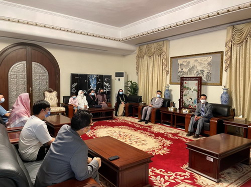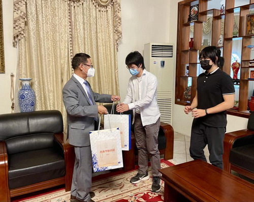 2022年4月28日,在开斋节即将到来之际,驻吉达总领事谭邦林在总领馆向领区穆斯林华侨华人、少数民族留学生代表等发放开斋节“慰问包”,并同大家亲切交流。