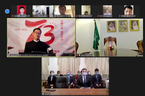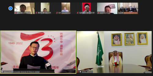 2022年9月29日,驻吉达总领馆举办国庆线上招待会,热烈庆祝中华人民共和国成立73周年。驻吉达总领事谭邦林出席招待会。沙特外交部麦加地区分部总司长马金、领区沙媒体、智库及各界友好人士、中资机构和华侨华人、留学生代表等约100人连线出席。