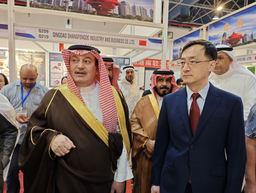 王总领事与吉达商工会副会长伊马德·阿布德等沙方人士为展会剪彩,进行交流并共同巡展。王总领事实地考察展位,听取部分参展企业商品介绍和参展体会,指出沙市场规模、消费能力在阿拉伯世界首屈一指,当前中沙关系处在历史最好时期,勉励企业抓住机遇,充分用好国际贸易展会平台,积极探讨合作机会,谋求建立、扩大对沙出口。同时,王总领事亦建议吉达商会组织会员企业到展参观,交流洽谈。