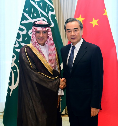 2018年7月9日,国务委员兼外交部长王毅在北京同来华出席中国—阿拉伯国家合作论坛第八届部长级会议的沙特外交大臣朱贝尔共同主持举行中沙高委会政治外交分委会第三次会议。