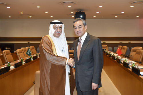 当地时间2019年9月25日,国务委员兼外长王毅在纽约出席联合国大会期间会见沙特外交大臣阿萨夫。