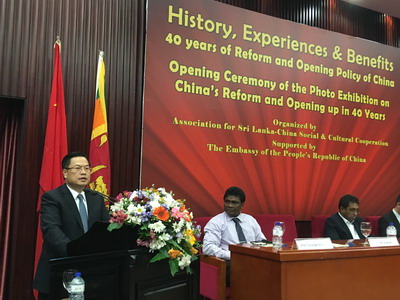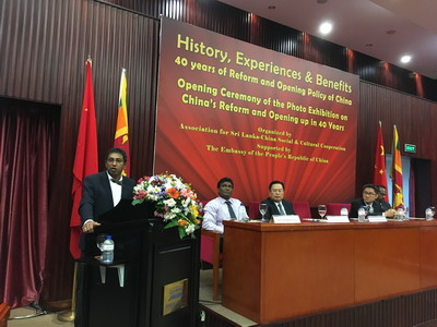 2019年8月16日,由驻斯里兰卡使馆和斯中社会文化协会共同主办的“改革开放主题图片展”在科伦坡隆重举行。驻斯里兰卡大使程学源、斯经济改革和公共分配部长席尔瓦、科伦坡大学经济系苏兰加教授以及斯政学研各界友好人士约200人出席。