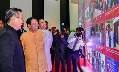 招待会前,程学源大使陪同西里塞纳总统、维克拉马辛哈总理等政要一同参观了“庆祝中华人民共和国成立70周年主题国际巡展”及“中斯关系2019年重大活动图片展”。招待会上还播放了《追梦人:中国2019》、《中斯“一带一路”建设成果展》等宣传视频。斯朝野各派政要均由衷祝贺新中国取得的辉煌成就,并高度评价中斯关系结出的丰硕成果。