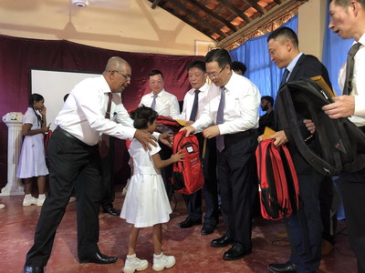 仪式上,程学源大使和出席的嘉宾还为优秀学生发放了奖学金和书包。