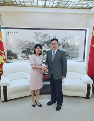 2019年10月20日,驻斯里兰卡大使程学源在科伦坡会见中国作协书记处书记鲁敏一行。