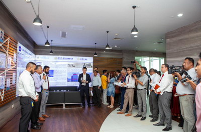 程大使一行首先来到科伦坡港口城项目现场,在项目展厅饶有兴趣地听取了相关负责人的介绍,观看了视频图解和沙盘模型,认真询问了有关情况。在港口城项目观景平台,有关负责人认真向媒体记者们介绍了项目建设进度、投资情况、未来发展愿景等。参访期间,斯有关媒体还就港口城未来投资前景、地契、国际金融中心法案、土地用途规划等事宜对几名当地员工进行了采访。双方一致认为,港口城项目不仅仅是中斯友好合作大项目,也将是世界各国共同合作的大项目,具有广阔的发展前景,必将成为推动斯里兰卡未来经济社会发展的新引擎。