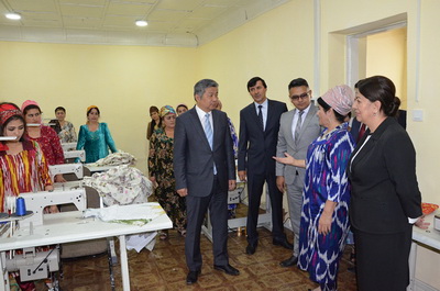 2018年5月11日,驻塔吉克斯坦大使岳斌出席由使馆捐赠的塔中央直属区瓦赫达特市妇女缝纫培训中心成立仪式。塔人民民主党副主席波波忠尼约恩、瓦赫达特市第一副市长以及当地各界代表100多人参加。