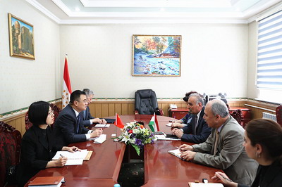 2019年6月3日,驻塔吉克斯坦大使刘彬会见塔文化部长奥鲁姆别克佐达。