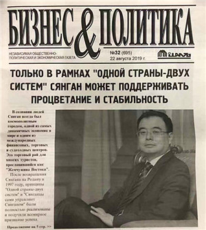 2019年8月22日,塔吉克斯坦主流媒体《商业与政治》报以《香港只有在“一国两制”下才能保持繁荣稳定》为标题在头版刊登了驻塔吉克斯坦大使刘彬的署名文章。文章全文如下: