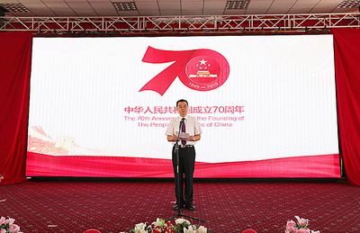 驻塔吉克斯坦大使刘彬在致辞中指出,新中国成立70年来,中国特色社会主义制度与时俱进、日臻完善;中国经济腾飞发展、谱写奇迹;中国民生显著改善、实现飞跃;中国外交开拓进取、砥砺奋进。在中塔两国元首的战略引领下,中方“一带一路”倡议同塔吉克斯坦“2030年前国家发展战略”深入对接,双方致力于构建人类命运共同体,并逐步构建中塔发展共同体和安全共同体。希望在塔中国企业争做新时代的奋勇搏击者,为推动中塔关系发展、推进“一带一路”建设不断作出新贡献。
