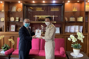 蓬拉欢迎吴志武履新,向吴志武介绍了南奔府防控新冠肺炎疫情和农业、旅游业发展等情况,表示愿继续与总领馆密切合作,促进南奔府龙眼等农产品对华出口,吸引更多中国游客。