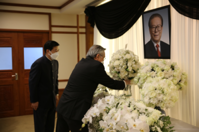 驻泰国大使韩志强在现场接待并陪同吊唁。
