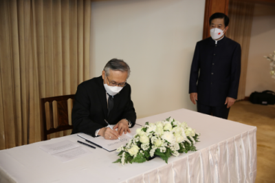 2022年12月2日,泰国副总理兼外长敦代表泰国政府到驻泰国使馆吊唁江泽民同志逝世。
