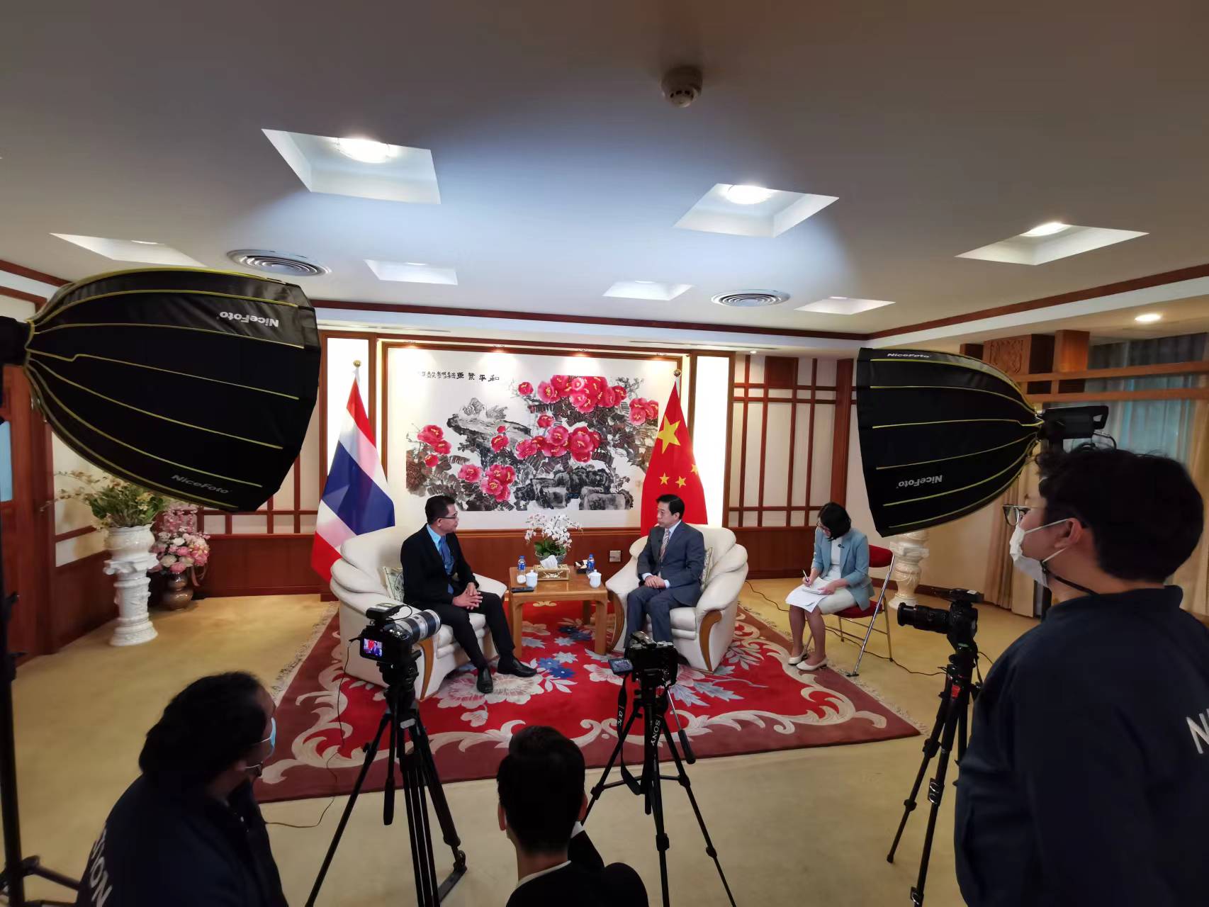 大使:感谢您的采访,这不仅仅是一次采访,也是我们两个人之间的一次深入交流。作为中国外交官,我们非常愿意将客观的中国介绍给新闻媒体朋友,通过媒体让泰国人民、世界人民全面了解到一个真实且生动的中国。