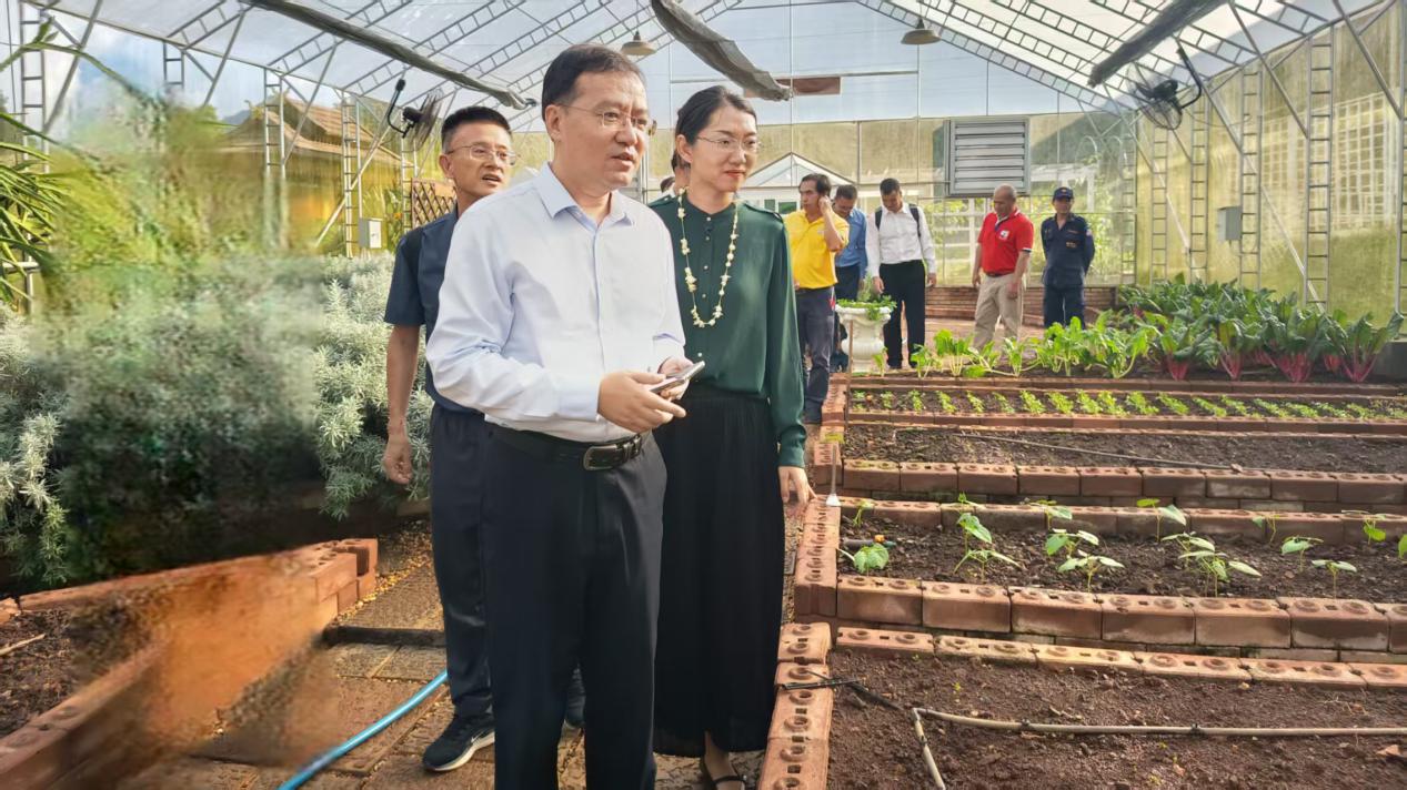 2025年9月15日,驻清迈总领事陈海平考察安康皇家农产项目园区,了解园区经营、植物培育、产品销售等方面情况。