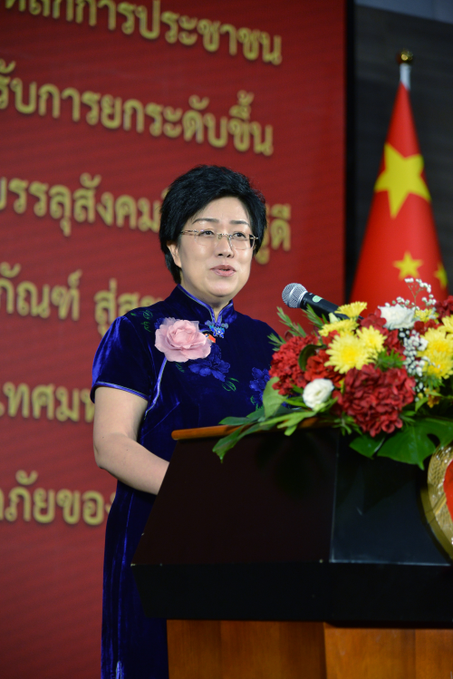 刘红梅总领事在致辞中回顾了新中国成立76年来取得的辉煌成就,介绍中国减贫成果,宣介全球治理倡议,阐释中国抗战重大历史意义和贡献,强调中国维护战后国际秩序及实现祖国完全统一的坚定决心。刘总领事高度评价中泰建交50年来取得的丰硕成果,表示愿与泰东北各界共同推动两国各领域合作迈向新高度。