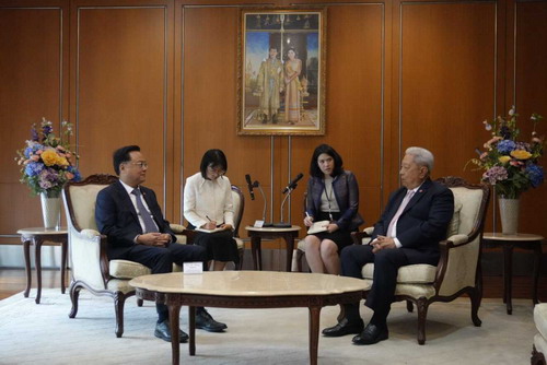 2025年9月23日,驻泰国大使张建卫到任拜会泰国枢密院主席素拉育。