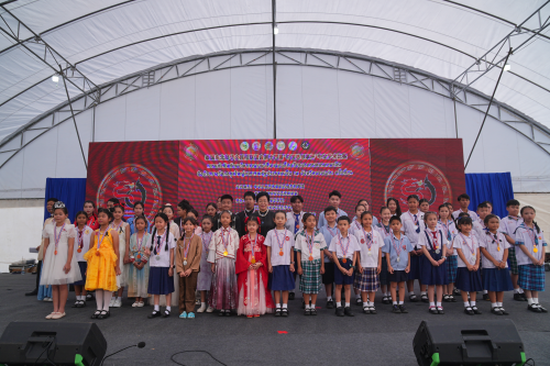 刘总领事祝贺中文学术比赛圆满成功,指出中共二十届四中全会通过的“十五五”规划建议展现中国扩大高水平对外开放决心,鼓励联谊会发挥作用,推动各华校把握机遇,培养更多精通汉语及中华文化的优秀人才,促进中泰交流合作及民心相通。