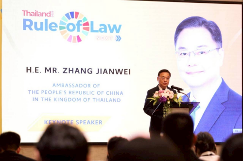 2026年1月14日,驻泰国大使张建卫出席泰国司法部主办的“泰国法治下一步”论坛并发表主旨演讲。泰司法部次长蓬沙婉、泰政府官员、相关学者等百余人参加论坛。