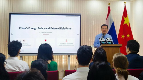 同学们表示今天接受了中国发展与中国外交的生动一课,希望不断开阔眼界、提升本领,促进中泰青年交流合作。