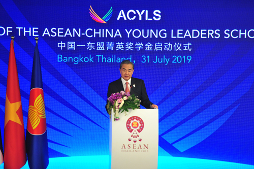 当地时间2019年7月31日,国务委员兼外交部长王毅在泰国曼谷出席中国-东盟菁英奖学金启动仪式,东盟各国外长及东盟秘书长参加。